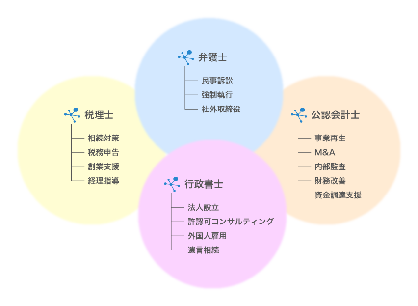 弁護士、公認会計士、税理士、行政書士がオンラインでのセミナーやコンサルティングを行います。